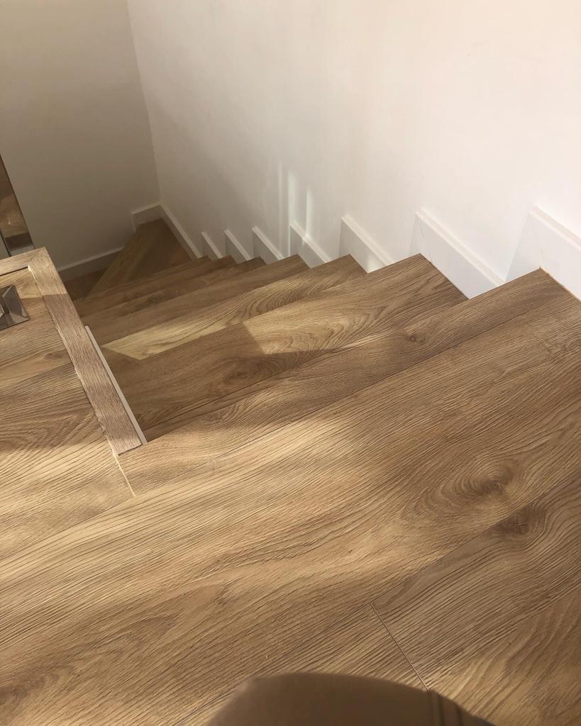 Revestimos escaleras con parquet a medida, elegancia en cada peldaño.